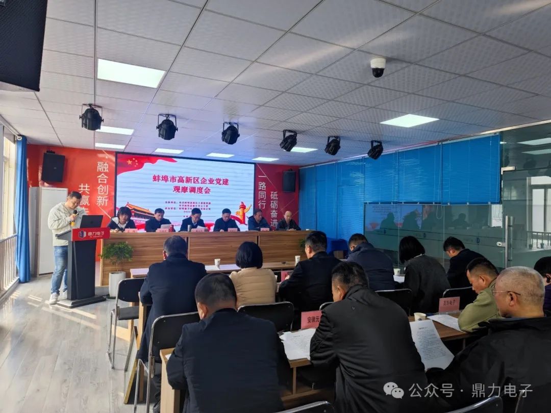 2024年3月28日下午三點,在蚌埠鼎力電子科技有限公司會議室召開蚌埠高新區(qū)企業(yè)黨建觀摩調(diào)度會,會議由張躍江書記主持,會議議程總共分為六個部分:鼎力電子黨支部匯報黨建工作開展情況;全區(qū)黨建工作示范點命名文件并授牌;區(qū)非公辦解讀黨建共建“七個一”工作要求;黨建指導(dǎo)組組長匯報工作開展情況;13個企業(yè)黨建工作示范點交流發(fā)言;會議總結(jié)點評。